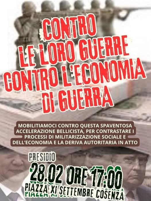 Per queste ragioni sabato 28 febbraio alle ore 17:00 saremo in piazza a Cosenza in Piazza XI Settembre.
