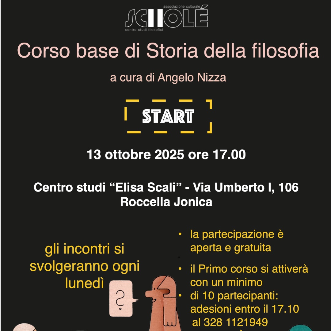 Per il settimo anno consecutivo riprendono le conversazioni filosofiche organizzate da Scholé nel Centro Studi Elisa Scali di via Umberto I, 106, a Roccella Jonica.