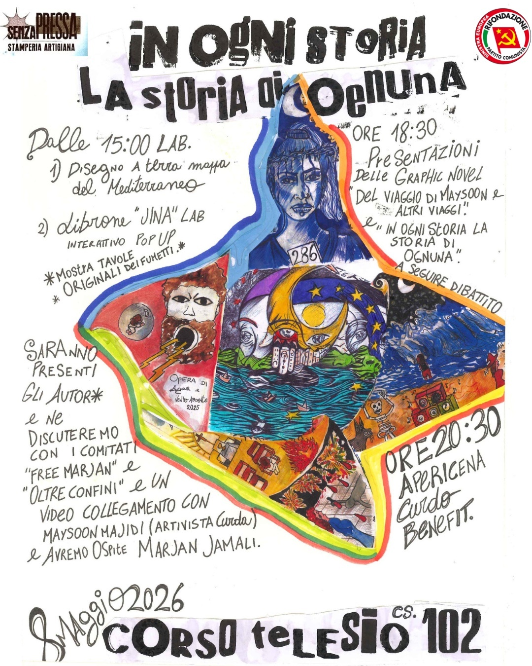 Dalle 18.30 presentazione delle graphic novel di Vento Ardente e Agar sulle storie di Maysoon Majidi (in videocollegamento) e Marjan Jamali (che sarà con noi) con attivist da tutta la Calabria.