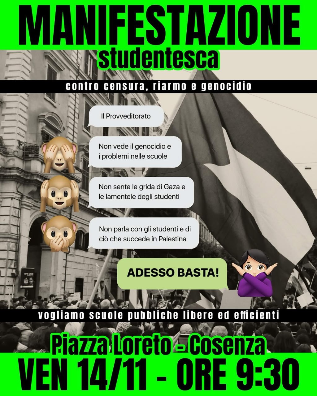 Manifestazione studentesca contro censura, riarmo e genocidio